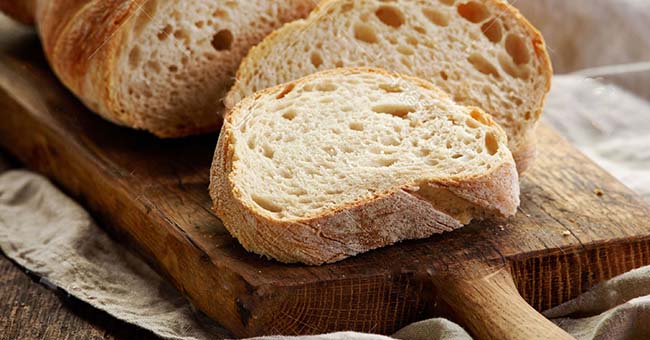 Итальянская чиабатта выпекалась на основе природных дрожжей длительного брожения. Снаружи такой хлеб имеет приятно хрустящую корочку, а внутри – большие поры. Это свойство позволяет использовать в чиабатте разнообразные припеки – оливки, сыр, вяленые томаты, перец, лук, базилик. Традиционная чиабатта готовится на кефире, или молоке, с добавлением оливкового масла.
