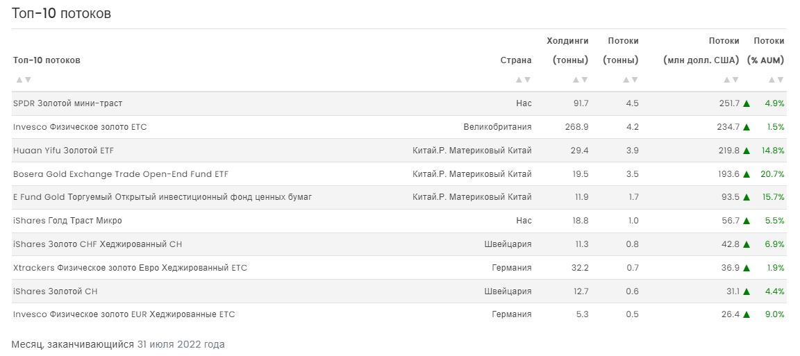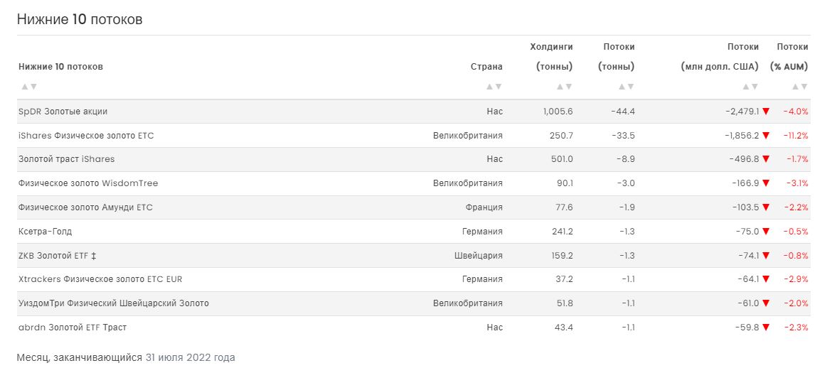 SpDR® Gold Shares и iShares Physical Gold возглавили глобальный отток в июле: