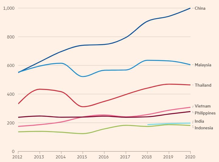 - Бегство иностранных производителей из Китая из-за угрозы санкций со стороны США и других стран Запада. По мере роста соперничества между Китаем и США в области технологий и безопасности все больше компаний опасаются ограничений на то, что и где они могут производить. В результате многие дополняют производство в Китае, который по-прежнему является крупнейшим производственным центром в мире, расширением производства в другие страны.